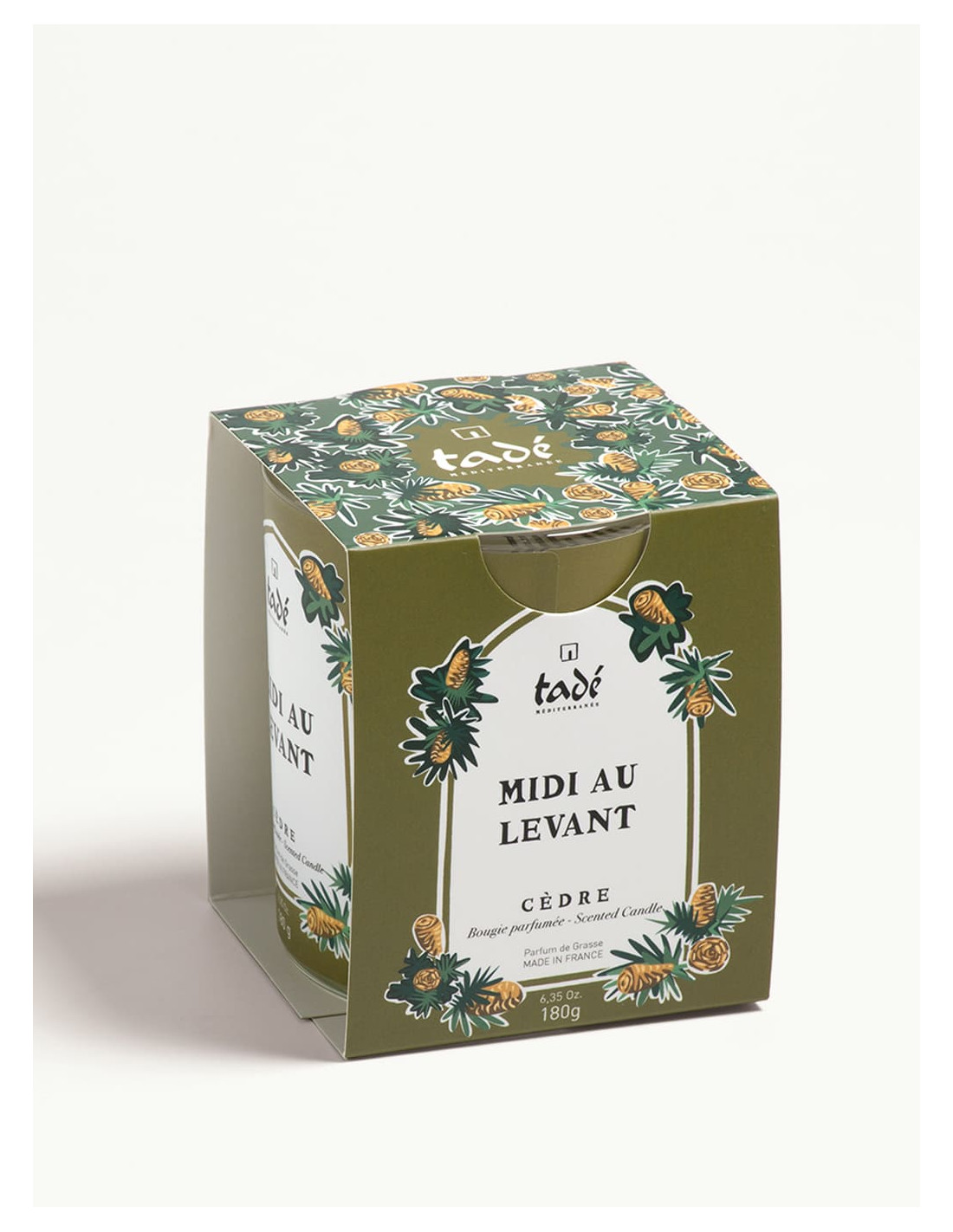 TadéBougie parfumée aux notes boisées et orientales, infusée de cèdre du Levant, pour créer une ambiance chaleureuse et raffinée. Laissez-vous transporter par son parfum envoûtant, qui embaume délicatement votre intérieur et invite à l’évasion. Idéale pour apporter une touche d’élégance et de sérénité à votre espace.